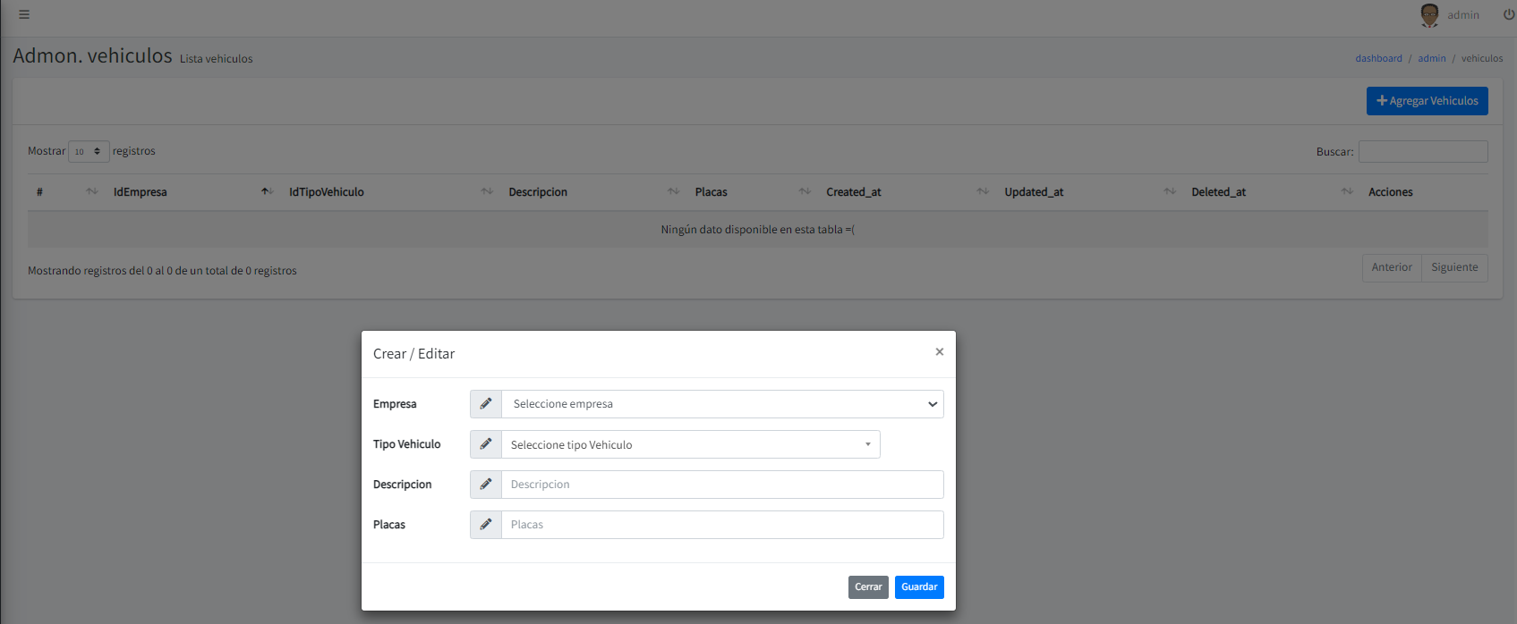 Ya esta creado el catalogo de tipos de vehículos ahora crearemos el catalogo de vehículos que va a tener los siguientes datos