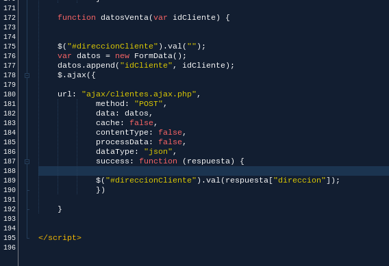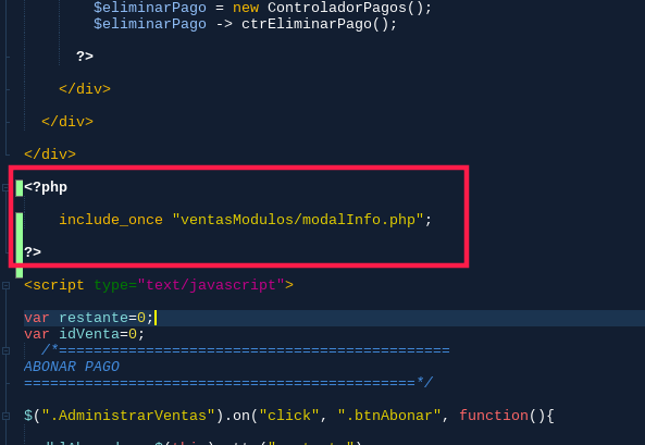 Al final del archivo vistas/modulos/ventas.php antes de que empieze la etiqueta script ponemos el siguiente código