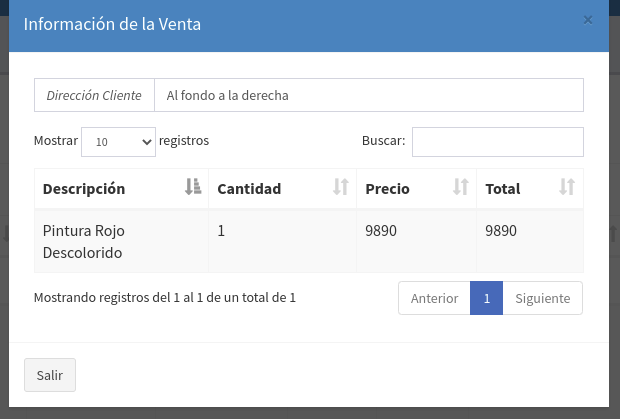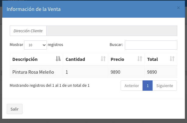 Al mostrar las ventas en la columna acciones se podrá ver los siguiente