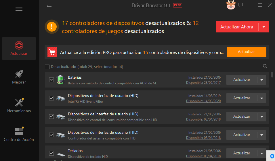 Si al reiniciar observamos que aun hay dispositivos sin controlador instalado podemos usar Driver Booster, que se encargara de buscar e instalar los controladores mas básico de manera gratuita