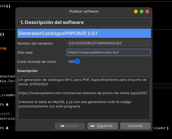 Ya tenemos nuestros menús creados ahora sigue meter los catálogos de configuración, el primero seria el catalogo de empresas en el cual se van a capturar los datos de la empresa como nombre, razón social, domicilio logo y datos de facturación del SAT, estos datos saldrán en las impresiones de cotizaciones, ventas y reportes.