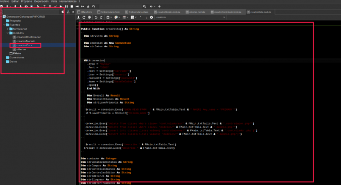 Ahora solo queda hacer la función para generar automáticamente el código HTML/PHP para la vista del catalogo en base a la nueva tabla.
